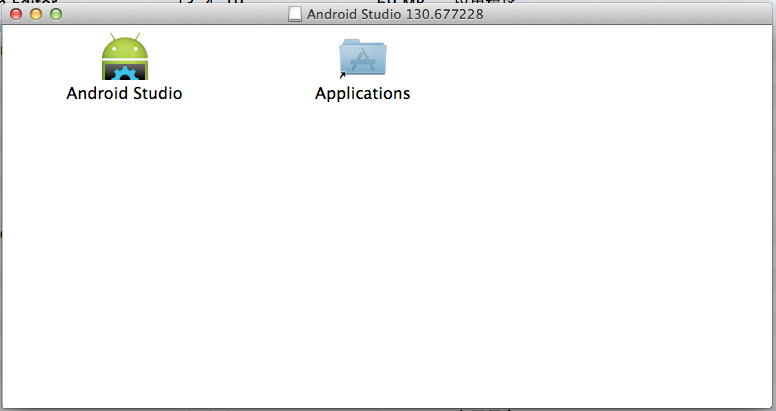点击页面中的“Download Android Studio for Mac v1.0”按钮下载文件,下载的文件名为android-studio-bundle-130.677228-mac.dmg,双击打开可以看到如下界面,是我比较喜欢的Mac安装界面,直接将应用图表拖近Applications目录就可以了: