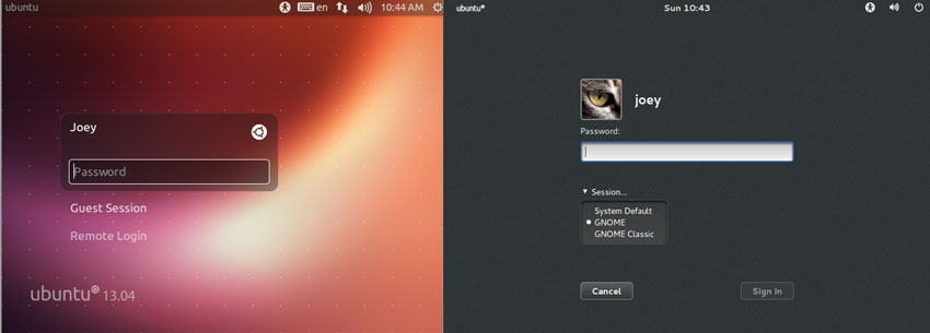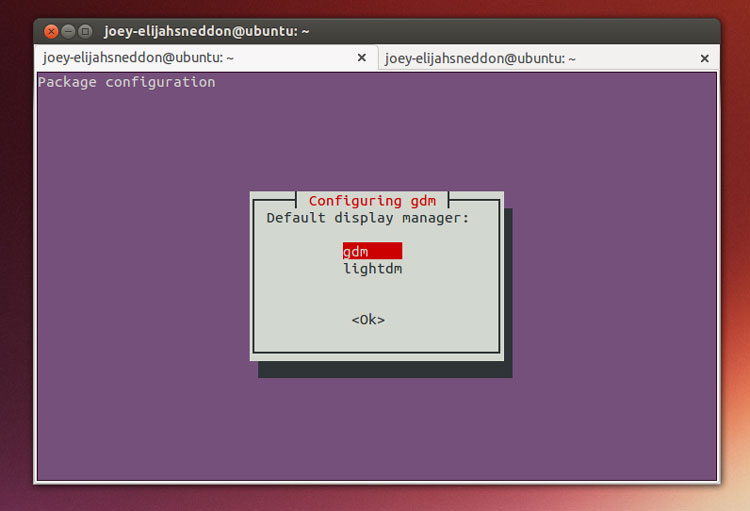 这两个选项都会让你在登录之前选择一个会话(所以如果你希望的话你可以登录Unity环境)。‘lightdm’是Ubuntu默认选项,但为了一个真实的GNOME体验,例如获得锁定屏幕通知,你要选择GNOME显示管理器(GNOME Display Manager也称作GDM )