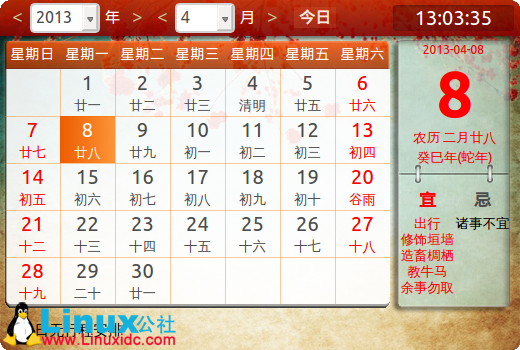 中文字体,实用的天气预报,农历确实为系统增添不少特色,感谢政府做了这件利民的事情,2013,应该是linux的春天。