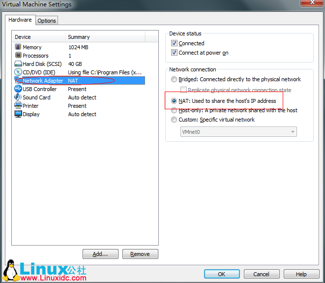 然后确保虚拟机centos的网络配置是NAT,如下图:
