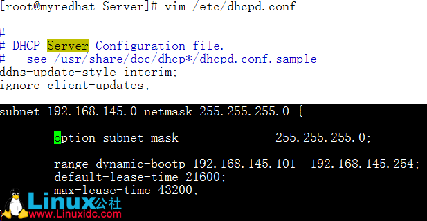 ② vim /etc/dhcp.conf 配置地址池等网络参数。