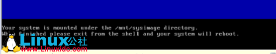 此时,我们要阅读上图中的信息,从中我们了解到,文件系统已经挂载到/mnt/sysimage目录下了,这时我们要切换到此目录下,使用 chroot /mnt/sysimage这一命令即可。这时我们就可以执行命令了。