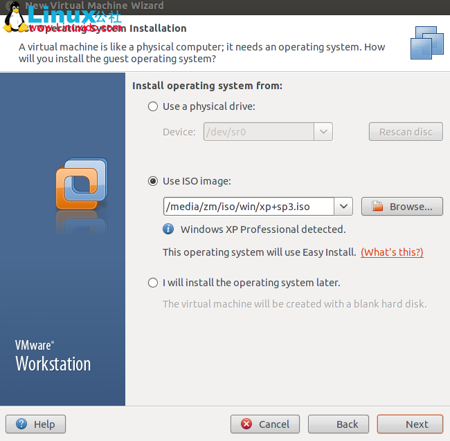 指定虚拟机操作系统安装镜像