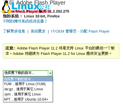 解压tar -zxvf install_flash_player_11_linux_i386.tar.gz 解压后是一个 libflashplayer.so