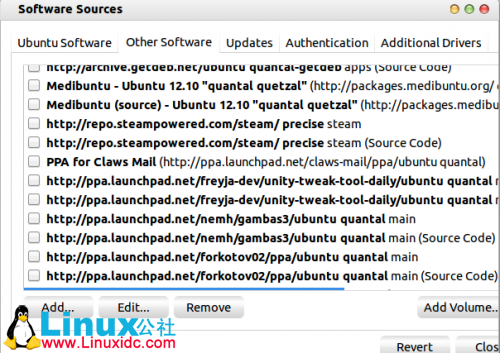 开始任何升级过程之前,建议禁用所有的第三方软件库。您可以在“系统设置” – >软件源 – >其他软件。