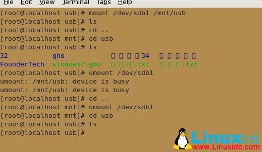 要退出这个usb的目录,这样,在使用umount /dev/sdb1
