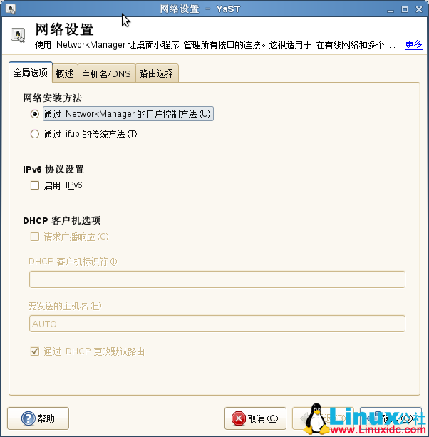 进到图形界面的“网络设置”中的“全局选项”,如下图所示: