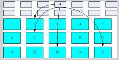 如图,假设某一个文件的权限与属性数据放置到inode 4号下(小方格)而这个inode记录了文件数据的实际放置点为2,7,13,15这4个block号码,此时我们的操作系统就能够据此来排列磁盘的阅读顺序,可以一下子将4个block内容读出来。