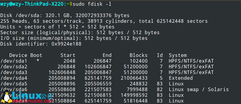 查看系统的磁盘代号: