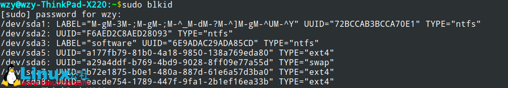 查看磁盘分区的UUID