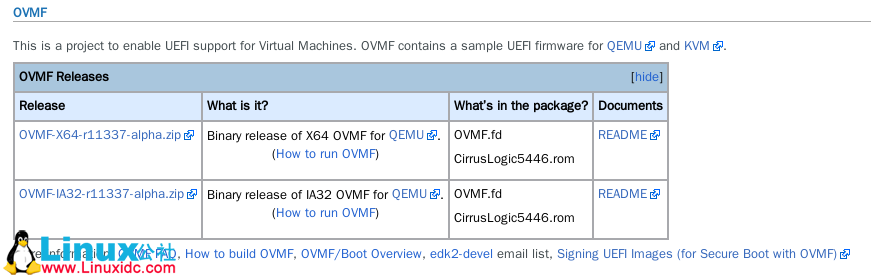 我在Arch Linux上使用aur上的ovmf来实现了相应的功能,ovmf使用的是TianoCore项目QEMU的EFI BIOS的实现。