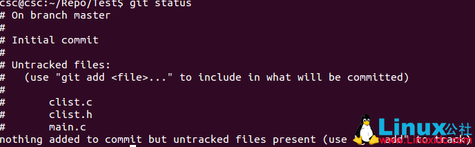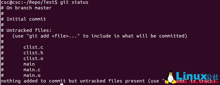 项目中有clist.h clist.c main.c三个文件,编译执行后,生成了三个文件 clist.o main.o main(执行文件)。这三个文件是不需要进行版本管理的,所以需要忽略这些文件,使用 git stauts查看后,发现这三个文件也是处于 Untracked files状态。而实际上我们是想忽略他。