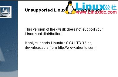 我用的是Ubuntu 12.04版本的Linux系统,在安装DVSDK时,会出现DVSDK只能在ubuntu 10.04上安装(如图1)