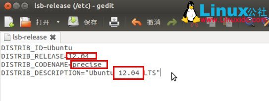 于是可以暂时认为修改系统版本信息,在 root 下打开 etc/lsb-release 文件(打开如图所示,红方框中的是待修改的地方)