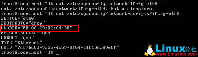 将HWADDR的值修改为/etc/udev/rules.d/70-persistent-net.rules文件中的新值,修改后如下: