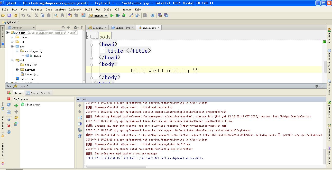 先来看看intellij的界面,虽然有点像jbuilder,但是还是可以看得过去的吧。
