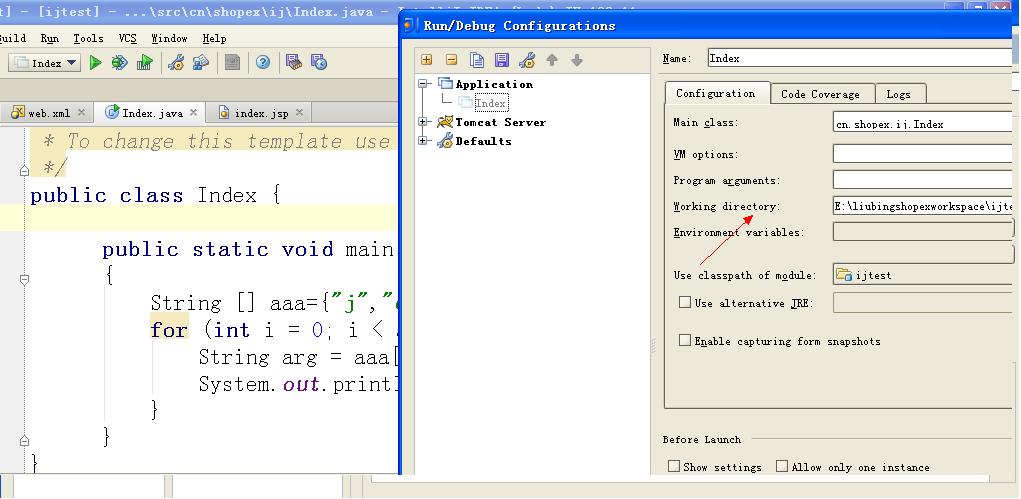 用intellij启动main函数的时候可以在Edit Configurations里面选择main函数指定classes的读取路径