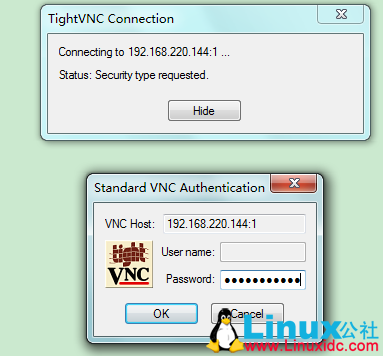 关闭 VNC 服务器:[确定]