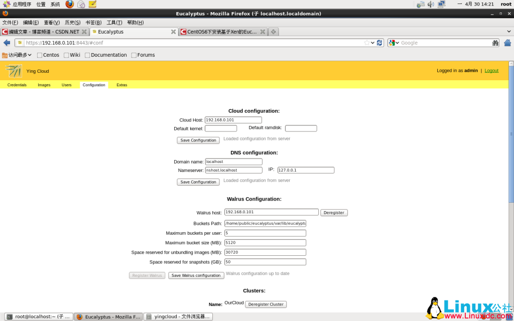 - Xen 4.1.1 NC服务器上面需要完全安装,其余服务器需要几个编译好的rpm,参考 http://www.linuxidc.com/Linux/2012-08/68287.htm