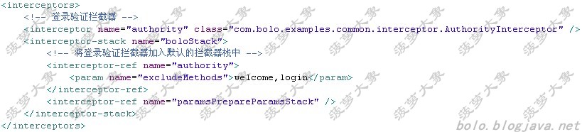 做好这一步之后,那么登录验证拦截器将会对除了welcome与login之外的所有方法进行拦截了。另外我想说下,拦截器的实现还有一种注解的方式,它不需要实现拦截器类,只需要指定一个注解类型和一个拦截方法就可以了,具体的请自己去查相关资料。这里我没采取注解方式是因为它只能应用到方法级别,不能进行代码复用,如果有多个Action都需要执行拦截操作,那么就得把同样的注解方法复制到不同的Action中,这无疑是很糟糕的。而使用拦截器类就简单多了,只需要在配置文件中指定它,并引用它,就可以在任意的Action中生效,也没有侵入式代码,这就是常说的AOP切面,struts2的拦截器就是AOP的一个具体实现。