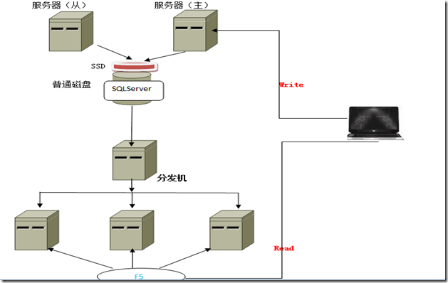 通过这些技术后,数据保护和在线能力都有了很大的提高,但是这么多的操作都集中到了存储上,当访问量很大时,存储就成了数据库系统的瓶颈,那该如何处理呢?有两种思路,一提高存储系统的性能,使用转速更快,性能更好的磁盘,所以现在出现了很火的SSD;二拆分业务或者是使用读写分离,将对一台数据库的访问分散到多台机器上,减轻单台的压力。