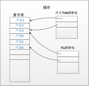 另外一个常见的问题就是:相同的数据被缓存在不同的缓存项中,例如,如果用户查询尺寸为36寸的彩电,那么可能有可能一个编号为100的电视产品就在结果中,此时,我们将结果缓存。另外,用户在查找一个生产厂家为TCL的电视,如果编号为100的电视产品又出现在结果中,我们把结果又缓存在另外一个缓存项中。这个时候,很显然,出现了内存的浪费。