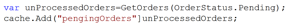 这种情况应该是使用缓存最常见的问题,例如,如果我们现在获取了一个Customer的所有没有处理的订单的信息,然后缓存起来,类似的代码如下: