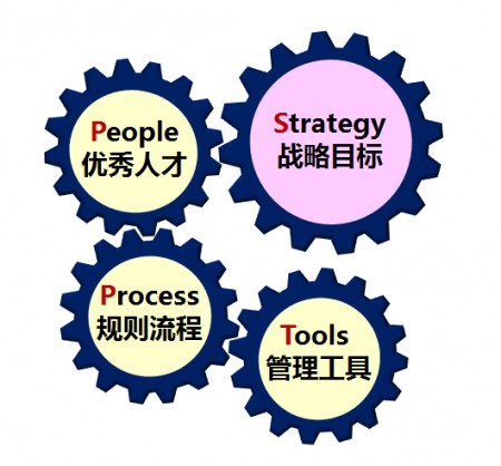 项目管理有四个核心要素即SPPT——Strategy战略目标、People优秀人才、Process制度流程、Tools管理工具。整个项目管理能力的改进过程中,都必须同时伴随着项目管理关注的这四个核心要素的配套支持。